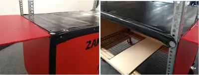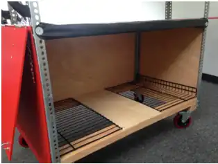 Storage Area The storage area will provide a space for the merchandise from the extendable shelves when in transit. It will be enclosed with a thin sheet of plywood on three sides. Figure 5 shows the base is made of wire racks and a sheet of plywood.