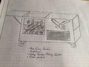 | The first prototyping phase consisted of images and drawings to get a general understanding and shape and look of the cart. This helped the team establish a design on the appearance of the cart and the main points of concern, such as mobility, the slide out tables etc.