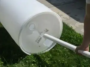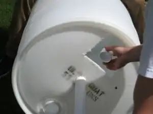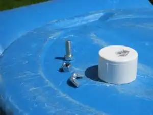 Stick the PVC-cap combo all the way to the end of the drum and outside the 3/8 inch hole created earlier. Attach the wing nut to the bolt going through the barrel and screw on tightly.