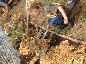 When choosing mulch it is important to consider any easy sources readily available, as well as the potential to hold weed seeds, permeability, thermal effects, stability, and the desired aesthetic.[20]Some good options are wood chips, hay and straw, manure, excess leaf cover and compost. Apply an even layer of mulch on top of the soil or fertilizer along the entire bed. It is also important to consider mulch depth, a general rule of thumb suggests between 1"-2" once settled, although more may be used to encourage soil building and to protect roots from foot traffic.[15] |