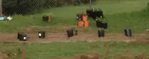 With a shovel, dig appropriately deep holes for each plant. Next take the plant out of its container. This can be done by holding it upside down with the stem in-between ones fingers and using the opposite hand to softly squeeze the container. This should loosen the soil enough so that the plant slips out easily. Now loosen the bottom roots a bit with a tickling motion and place in hole. It is very important that before you fill the hole that you water each individual plant for at least 5 seconds. After this is done the soil can be placed back into the hole.[20] |