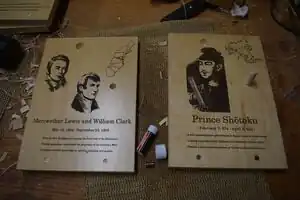 Through the construction of the prototypes we were able to learn a lot before we began working on the final product. This first lesson learned was from the first set of prototypes. Due to the use of accurate dimensions it was visible that the size we originally though would work turned out to be too small to fit all the text and the historical figure. Finding this out in the prototyping phase was great because it allowed us to make changes without wasting the expensive materials used for the final. The second lesson learned was regarding the contrast of the rack. Only using the laser cutter created a poor contrast between the engraved sections and the backboard thus making reading the text from a distance nearly impossible. We were able to deepen the contrast with the use of acrylic paint. Painting only the engraved sections made the text and figure much more visible.