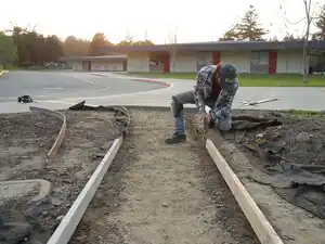 To figure out the correct mixture for making permeable concrete a small block was made to test the ratios of ingredients. Research had showed what the ratio of gravel to cement should be, but not how much water should be added to the mixture. To test this, water was added a little at a time to the gravel and cement mixture until a desirable consistency of concrete was received. After it dried the forms were removed leaving a strong, solid block of concrete that allowed water to permeate through.