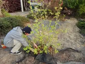 The weed mats were replaced and reinforced them with a thick layer of redwood mulch.