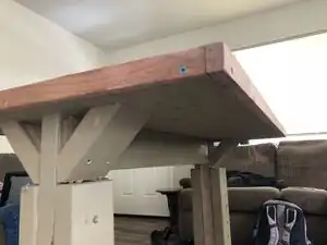 Screw the plywood top to the middle board for the leg.