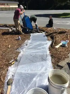 The purpose of the project was to replace a failing permeable pathway (Fig 1) at Catherine Zane Middle School in Eureka, CA with a functioning permeable pathway. The previously installed pathway was uneven, impermeable and produced undesirable loose gravel. The new path was successfully implemented and the middle school now has a solid, level, and permeable concrete pathway in the Peace Garden.