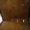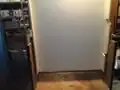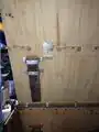 - 9b. Bolt wood into place (we drilled through the frame and board in an attempt to bolt one to the other). Ideally wood siding should be square to the base and therefor frame and floor.