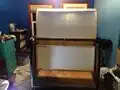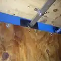 - 2b. Hinge plywood at desired locations (we used 2 door hinges rated to hold 100lb loads on each cut of the plywood anchored by 0.5" wood screws).
