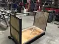 - 1b. Assemble frame vertically (bolt together preexisting tv frame sections welding in scrap metal to match dimensions of base as necessary).