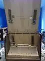 - 8a. Mount Handle to locking mechanism (we glued metal rods into a 3d printed plastic handle, metal rods are placed such that they go through the frame and into holes present in plastic disc [see step 1c] pinning disc [and consequentially table] in place at desired inclination)