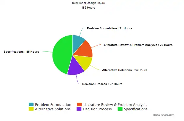 This pie chart represents a rough estimate of the hours spent designing and producing the RS Table.