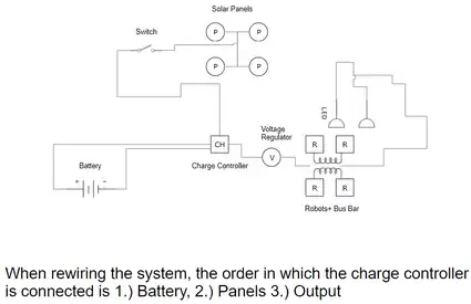 If the charge controller needs to be unplugged, Remove consumer wires, negative and then positive. Then the solar panels in same wire order, and lastly the battery in same wire order. (Refer to circuit diagram)