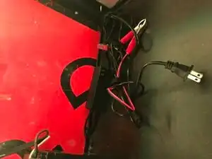 Hook up positive clamp (red) of trickle charger first to the positive terminal on the battery.