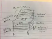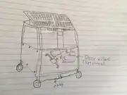 Treasure Chest: The body of the station is replaced with a wooden body that can withstand the weather conditions of Humboldt County. This design opens up like a treasure chest with a lock in the front for security. The solar panels are secured on top of the station to avoid being thrown off when the lid is open. |
