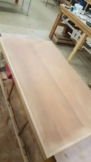 Cut a section for the top of the desk 42" x 30" then proceed to sand, route, and wax as needed.