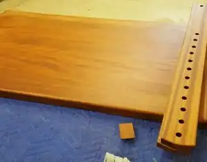 Generously apply "Howard's Feed-N- Wax" to every piece of wood making sure to evenly spread so that there is no color deviation in the final result. Once applied use a clean rag and wipe every piece of wood to remove excess wax.