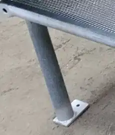 Using a welding machine, weld a flange onto the bottom of each leg and drill a hole in the flange to allow the bench to be drilled into concrete so it will not tip over or be moved.