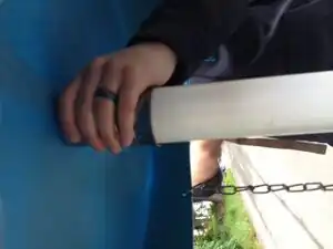 The Basket: The basket is designed to catch discs without damaging them. The top of the basket is made by cutting the bottom 4" off of a standard 55-Gallon HDPE drum. Every 6", there is a hole drilled ½" above the cut, numbering 12 in total. These serve as the attachments for the s-hooks, which hold up the chain. The top of the basket is attached to 3' of 2" schedule 40 PVC pipe via a 2" flange. The 12 chains are cut into 24" segments. The bottom of the chains connect to a 5" metal ring which hangs around the PVC pipe connecting the top to the bottom of the basket. The bottom of the basket is made from the top 8 inches of the HDPE drum. The bottom of the basket is attached to the PVC pipe with a 2" flange.
