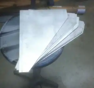 Cut triangular pieces out of metal that will be used as the side of the gutter additions.
