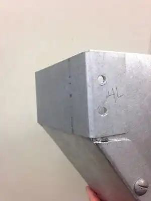 Cut a small rectangular piece and bend at a 90 degree angle to use as a bracket to hold the newly sealed pieces together. Apply sealant along any cracks between any of the metal pieces, but leave holes in the brackets open.