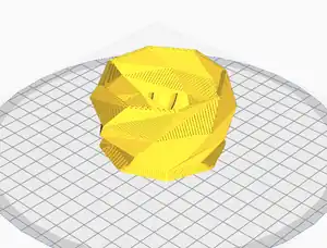 Problem: Finding a container my printer could print reliably when scaled. Solution: I tested 3 different shapes until I found one. The shapes included a cube, a cylinder, and then this low-poly shape I ended with.